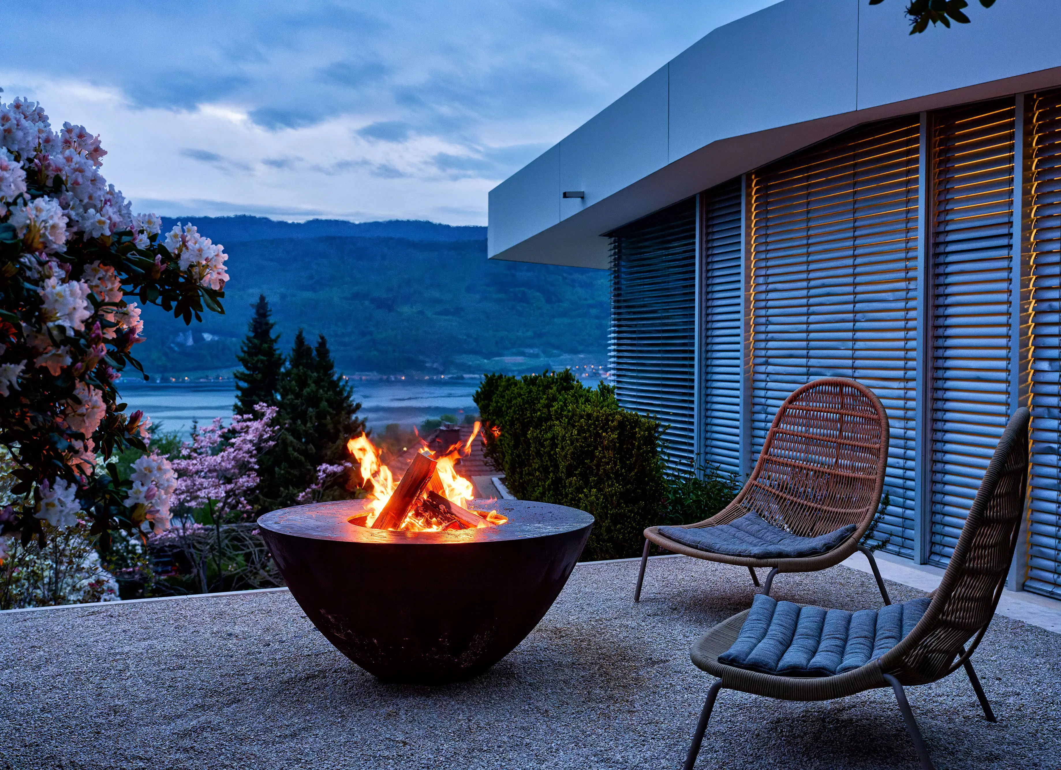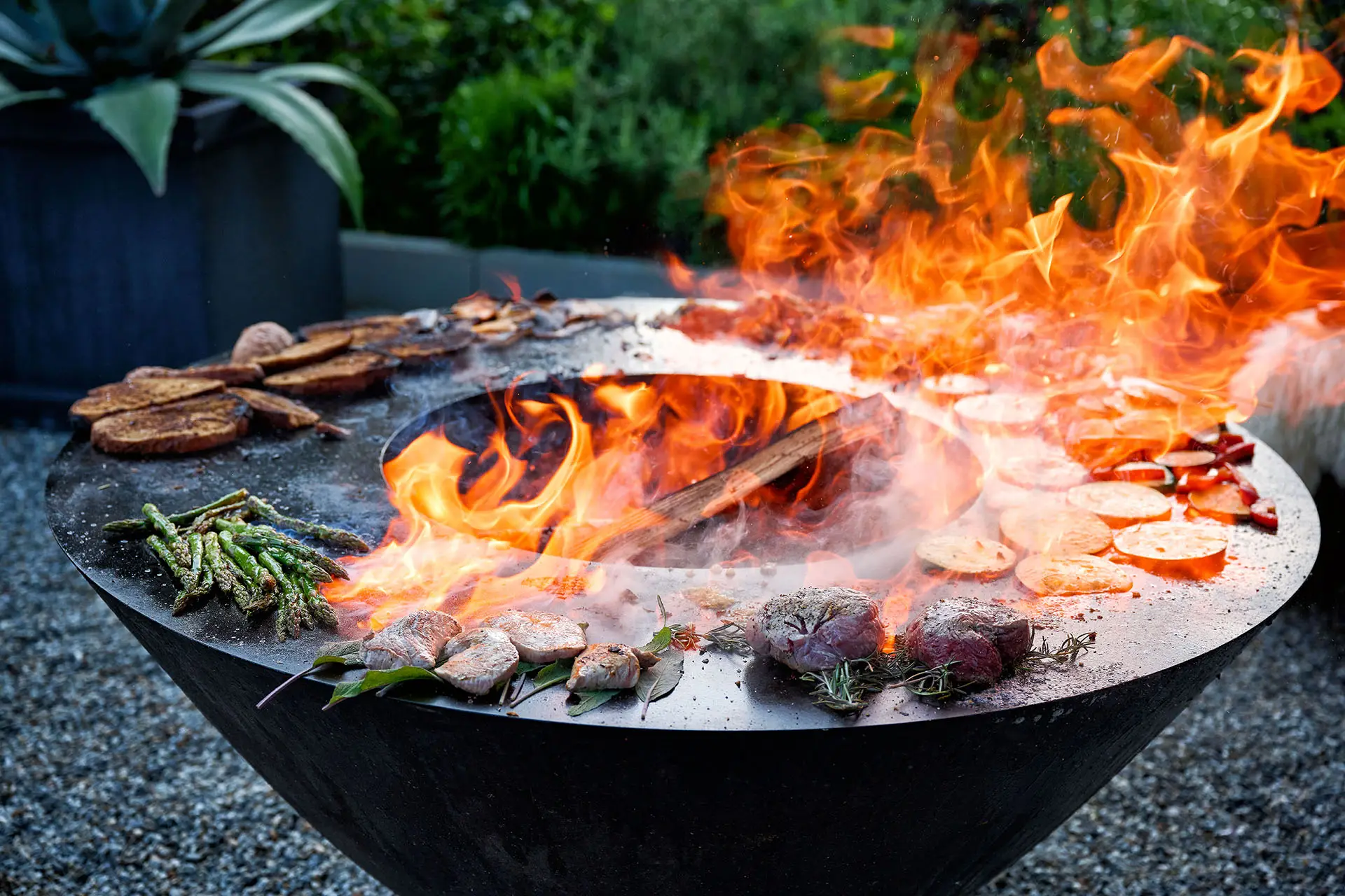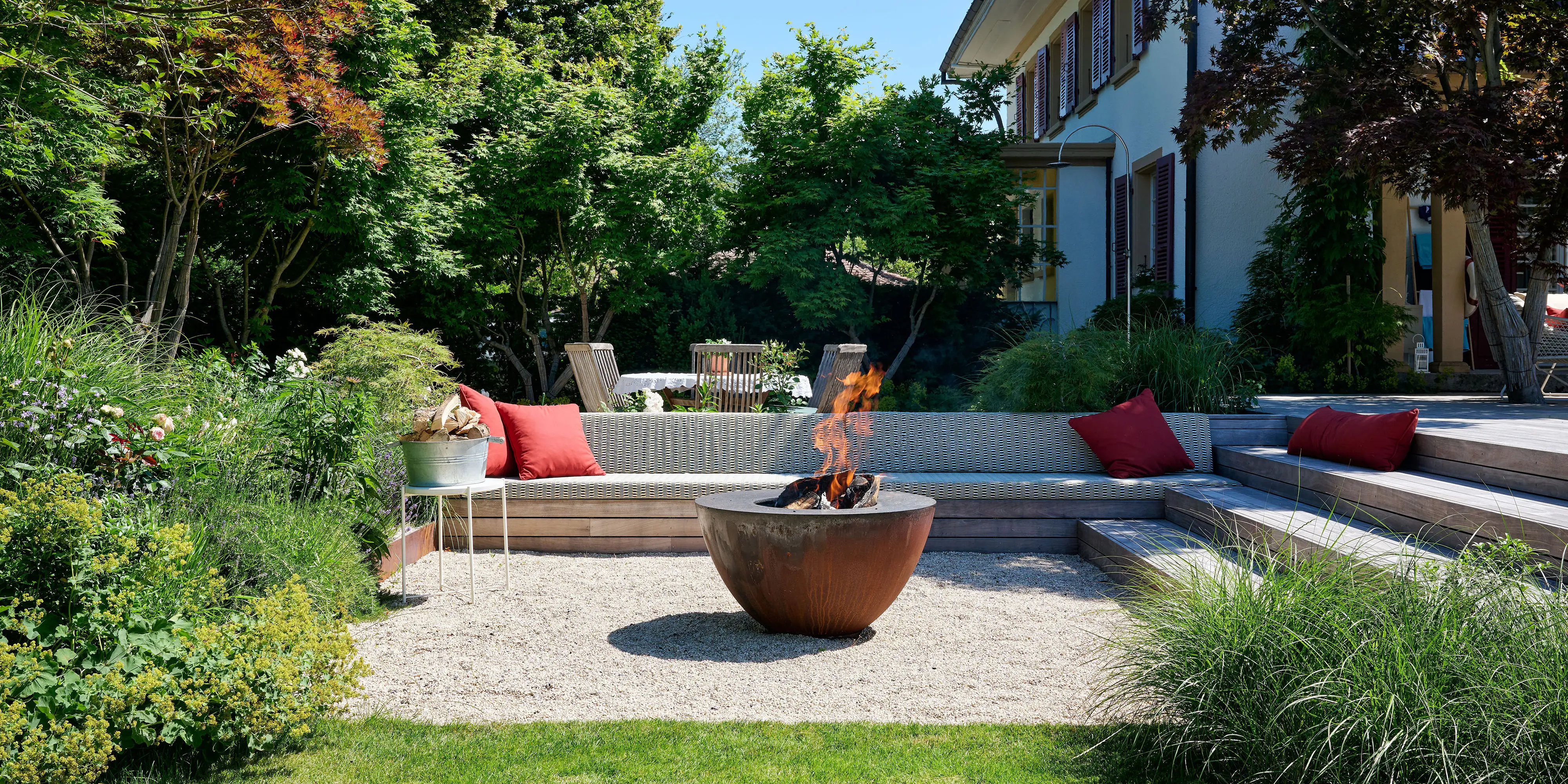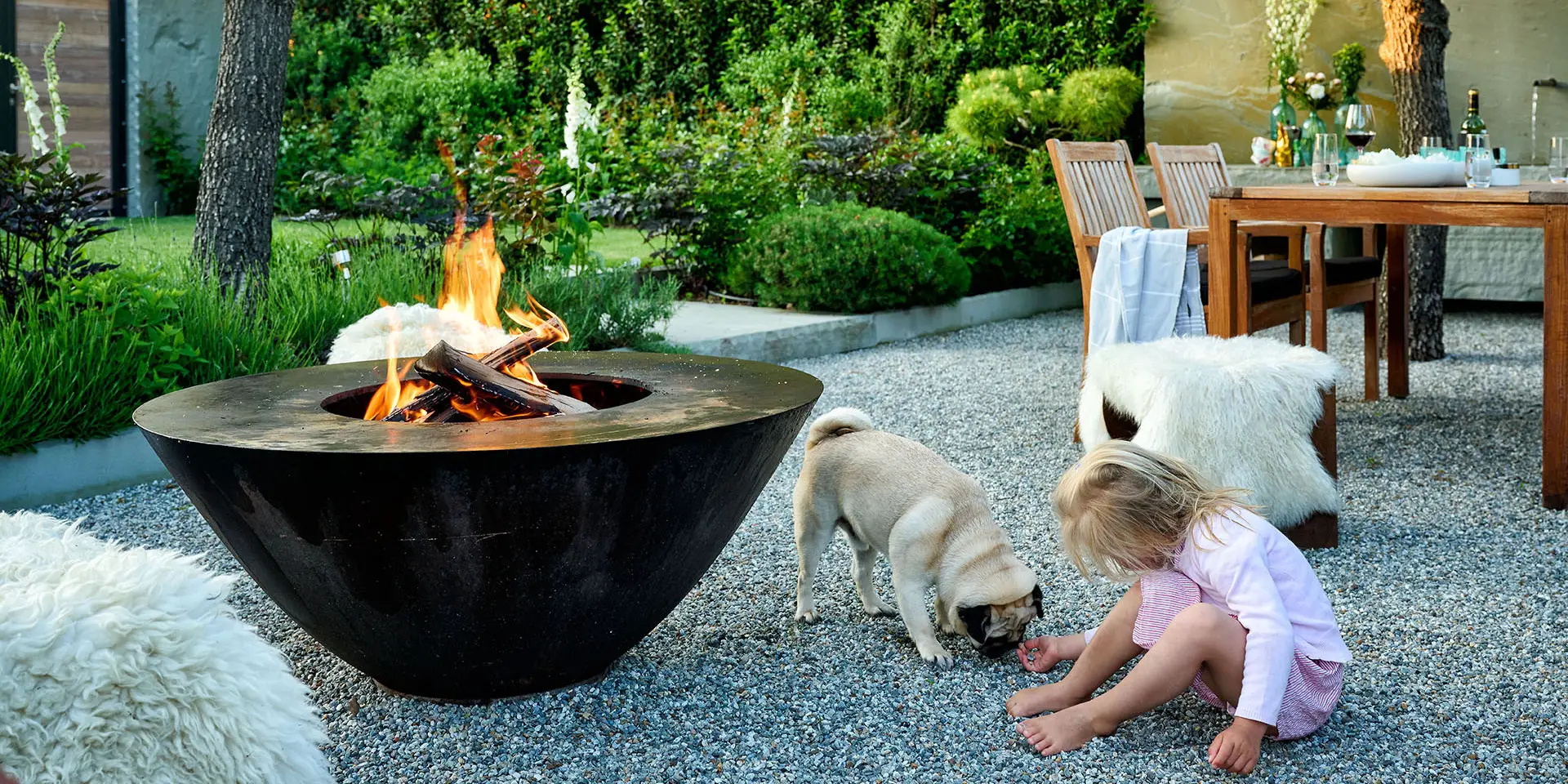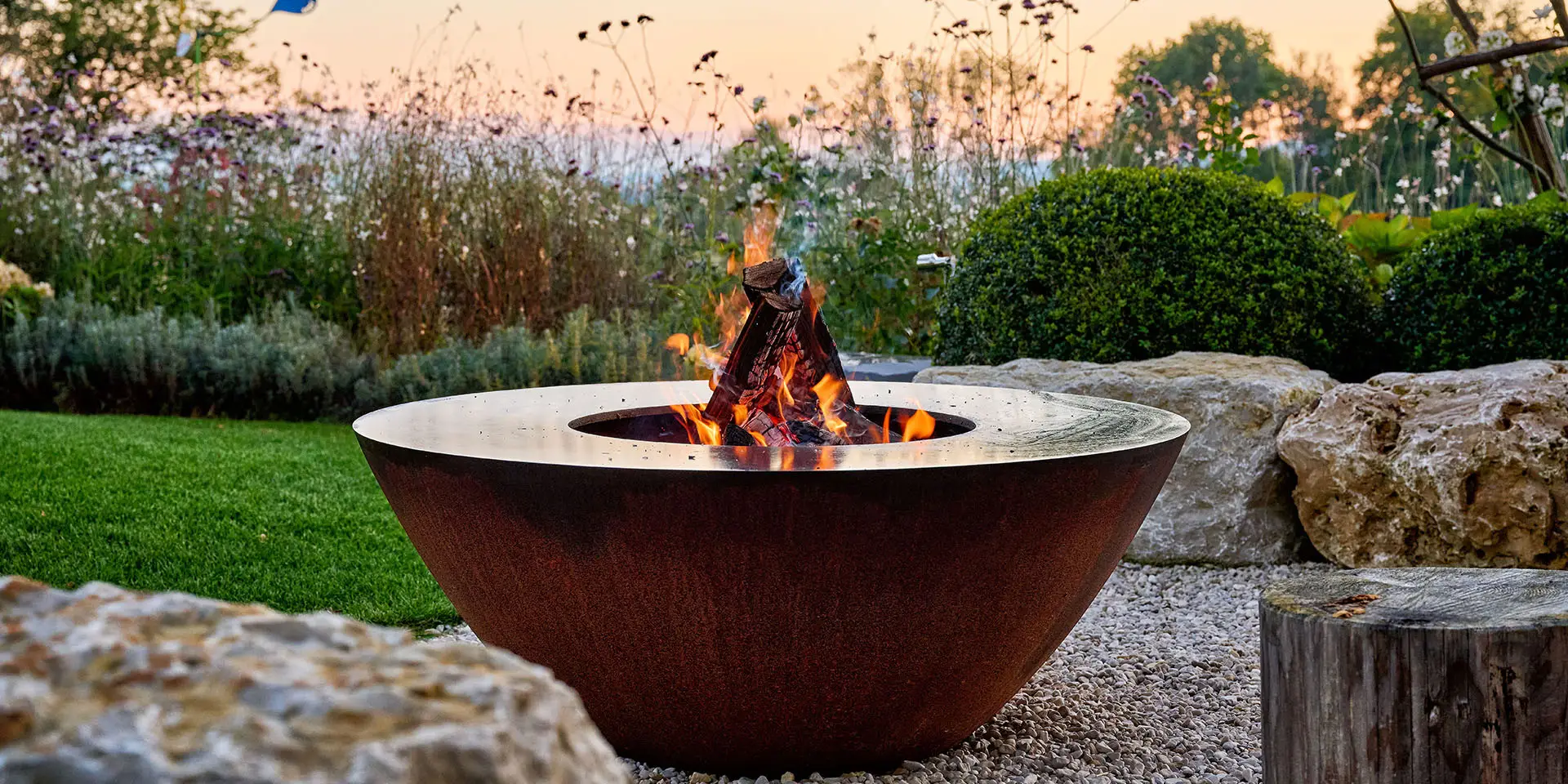 Der archaische Feuerring ist Schmuckstück, Feuer- und Grillschale in einem. Die Flammen tanzen, das Holz knistert, und bald schon steigen Ihnen die ersten Düfte des aufgelegten Grillguts in die Nase. Auf seinem breiten Rand können sie in geselliger Runde Fisch, Fleisch und Gemüsegerichte auf höchstem Gourmet-Niveau zubereiten.