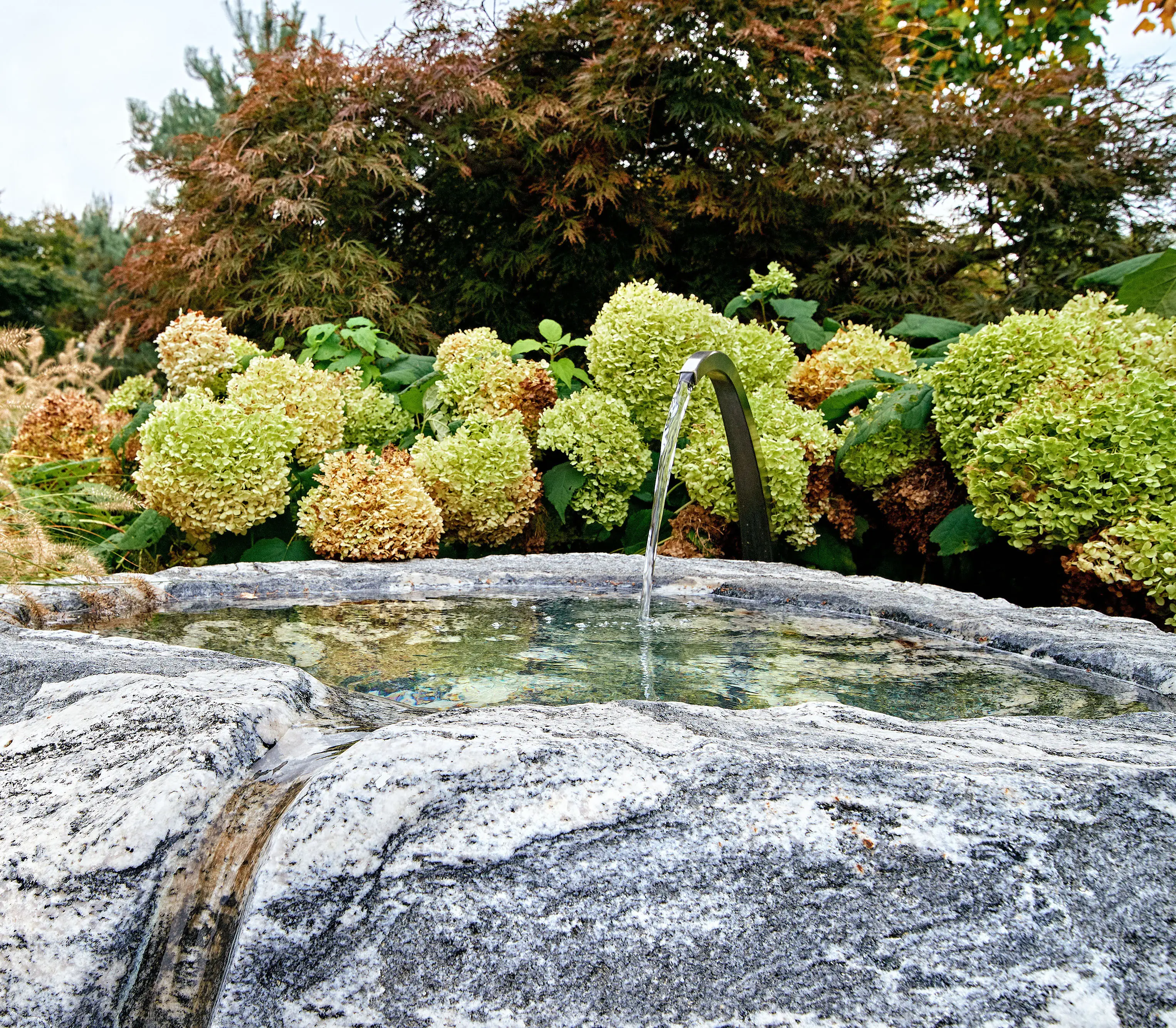 Dem sanften Plätschern des Wassers zu lauschen und dabei die Gedanken schweifen zu lassen, ist pure Entspannung und eine Auszeit vom hektischen Alltag. Kein Wunder, dass die Integration des Elements Wasser bei der Neugestaltung von Gärten zu den häufigsten Wünschen gehört – und wir erfüllen den Ihren.